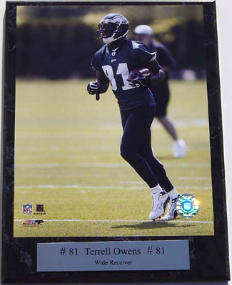 Terrell Owens Photograph Nested on a 9"x12" Plaque - Terrell Owens 9" x 12" Plaque. This Wonderful Memorabilia Comes to You Ready to Hang on Your Wall (All You Need Is a Nail). This Is an Absolutely Gorgeous Piece of Memorabilia That Would Look Truly Spectacular in Your Home, Business, or Office. Impress Your Friends, Family, Employees, Colleagues and Business Associates with This Stunning Piece of Memorabilia Hanging on Your Wall. What a Great Collectors Item!!!